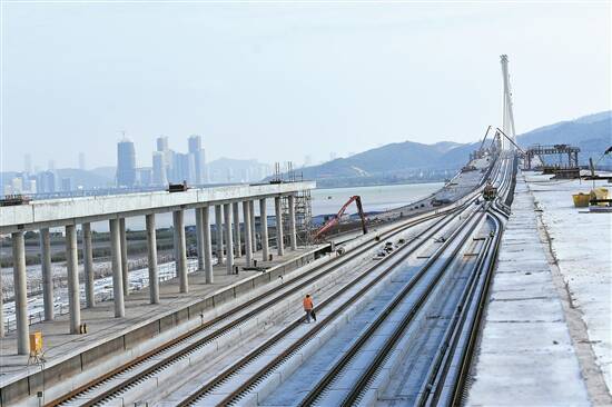 羊城晚报讯 记者郑达,通讯员孟庆虎、王剑强摄影报道:近日,随着施工人员将最后一对400米长钢轨缓缓地铺设在线路左线的无砟轨道板上,标志着由广东广珠城际轨道交通有限责任公司投资建设,中国中铁珠机城际HJZQ-1标项目部三工区(中铁六局)承建的珠机城际二期鹤洲南站主体工程顺利完成,这是继5月完成珠机城际金海大桥鹤洲西引桥工程全线贯通节点任务后实现的又一重要节点目标。