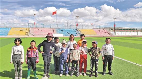 4000多米的高海拔让我稍微动动就感觉到呼吸不畅氧气不够,但足球队的孩子们在球场上跑跑跳跳完全没事。蓝天白云之下,他们高高低低毫无章法地站在一起,每个人脸上都写满了天真烂漫……