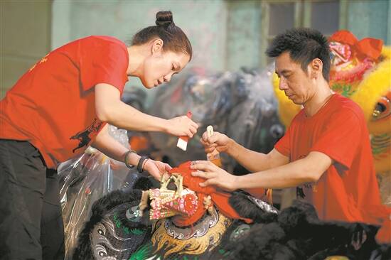 文正儿和师兄一起为狮头点睛