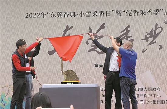 11月22日是二十四节气的小雪,亦是东莞香农的传统“采香日”。当天,2022年“东莞香典·小雪采香日”暨“莞香采香季”启动仪式在东莞市大岭山莞香非物质文化遗产保护园举行。一大早,莞香制作技艺国家级非物质文化遗产项目代表性传承人黄欧遵循古法,在保护园内采下头香,从而开启了今年莞香的收获季。