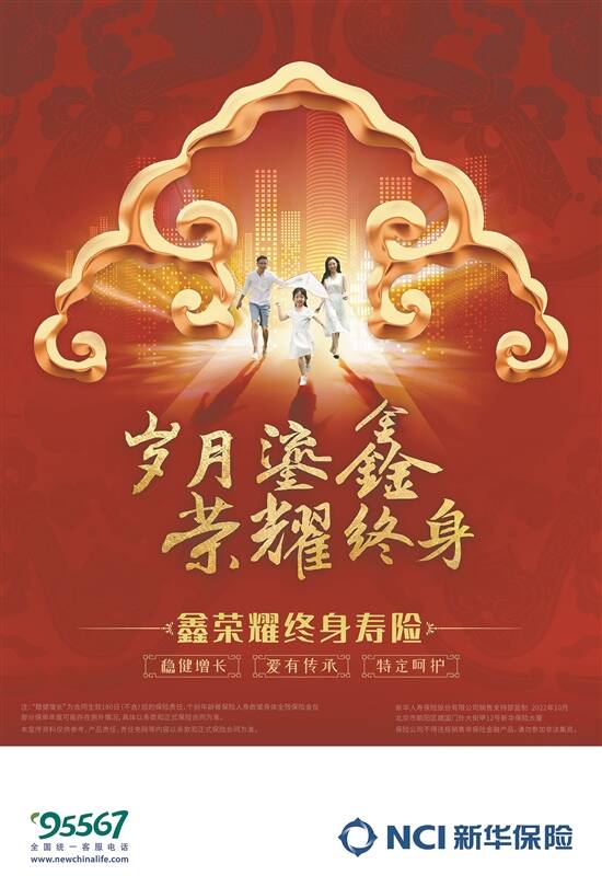 “鑫荣耀”传承经典设计,用“鑫”守护财富。“鑫”,寓意财富兴盛,“荣耀”象征着过去的光辉成就和对经典的一脉相承,“鑫荣耀”传承经典,再续新章,用“鑫”守护财富。这是一款利益明确、保障稳健增长的终身寿险产品,涵盖特定公共交通工具意外额外保障,满足身故保障、资金安全性需求,实现财富传承。“鑫荣耀终身寿险”具有以下三大特色:稳、升、活。