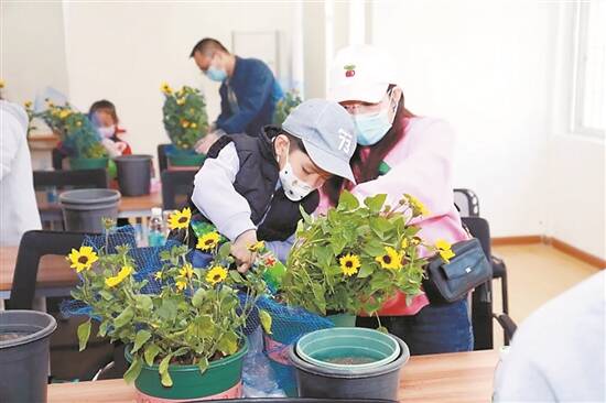 活动最后,主办方在金湾区图书馆自助图书馆前打造一片“护苗花池”,并将各亲子家庭亲手栽种的共1000盆向阳花移至花池内。