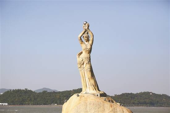 注:①珠海渔女巨型石雕,矗立在风景秀丽的香炉湾畔,雕塑高8.69米,重量达10吨,用花岗岩分70件组合而成,为珠海十景之一。