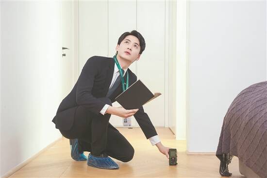 链家经纪人在测量房屋结构