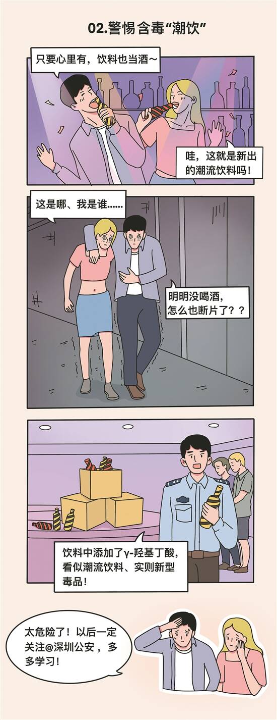 宣传漫画系列包括5个部分,分别是:倒卖信息可入罪;拒绝酒驾,才能“久”驾;网恋有风险,勿陷“杀猪盘”;十赌“久”输;警惕含毒“潮饮”。漫画围绕目前深圳公安整治工作的重点,梳理出5种与老百姓日常生活息息相关的多发性违法犯罪类型,用生动形象的漫画形象进行防范提示。