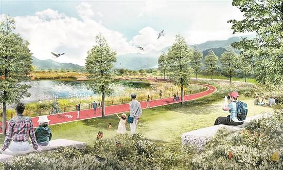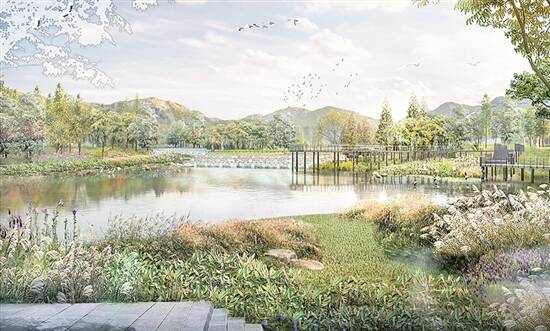 记者了解到,公园东侧坐落着狮子山观音寺,建成后园内可俯瞰水系景观,园外则可远眺风田水库。公园整体构建“一核、三带、八景”的空间架构。“一核”是环湖休闲核;“三带”分别为佛禅文化带、生态修复带及城市活力带;“八景”为林中禅寺、丹崖观海、草甸仙踪、水绕山转、苇间山镜、山水坐莲、半山飘台以及乐活湾区。