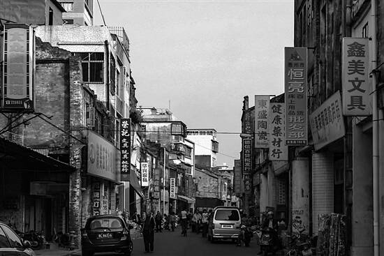 几度兴衰沉浮,几许唏嘘感慨。在水东街上游走,伫立于古旧的骑楼前,能感受到它的沧桑。每一次去都会有新的认识,水东街正是因为骑楼的存在,才变得意韵深长。一间茶馆中,几位老人正在屋内悠闲地喝茶聊天,安详怡然,仿佛一群大隐于市井的隐者,偶尔有三三两两衣着时髦的行人走过来,倒也有一种历史与现实交替的感觉。