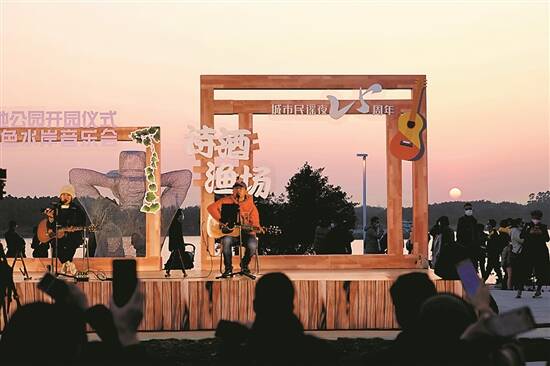 当晚,公园里还举行了欢乐嘉年华——“城市民谣夜”儒林湾金色水岸音乐会、儒林湾之夜2023新年烟火晚会和烟火气浓郁的跨年集市。数万名市民游客一边享受美食、聆听优美音乐旋律,一边欣赏落日里的儒林湾畔美景……