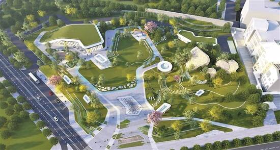 整体项目设计理念以海鸥叠水、展翅腾飞为灵感,将建筑与自然融为一体,灵动恢宏。建成后将与周边的图书馆、传媒文化综合体、工人文化宫等串联成片,打造一流的公共服务文化片区,成为独具特色的公共服务新地标和城市文化新名片。