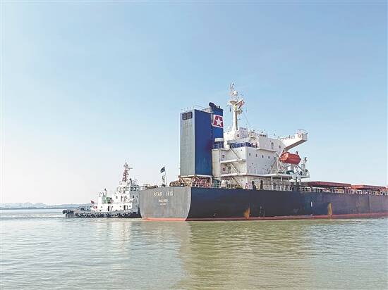 羊城晚报讯 记者余宝珠摄影报道:记者从东莞海事局获悉,东莞深赤湾码头1月7日迎来首批散船进口巴西玉米的马绍尔群岛籍“伊瑞斯STAR IRIS”轮。该船装载68301吨进口玉米,从巴西(桑托斯)港出发,跨越茫茫太平洋到达位于东莞的麻涌港。这是中国首次散船进口巴西玉米,标志着巴西玉米输华走廊正式打通,对加强中巴农业合作、维护全球农业供应链安全稳定等产生积极深远影响。