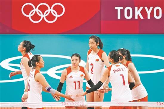 姚迪(左三)与朱婷(左四)在东京奥运会上 图/视觉中国