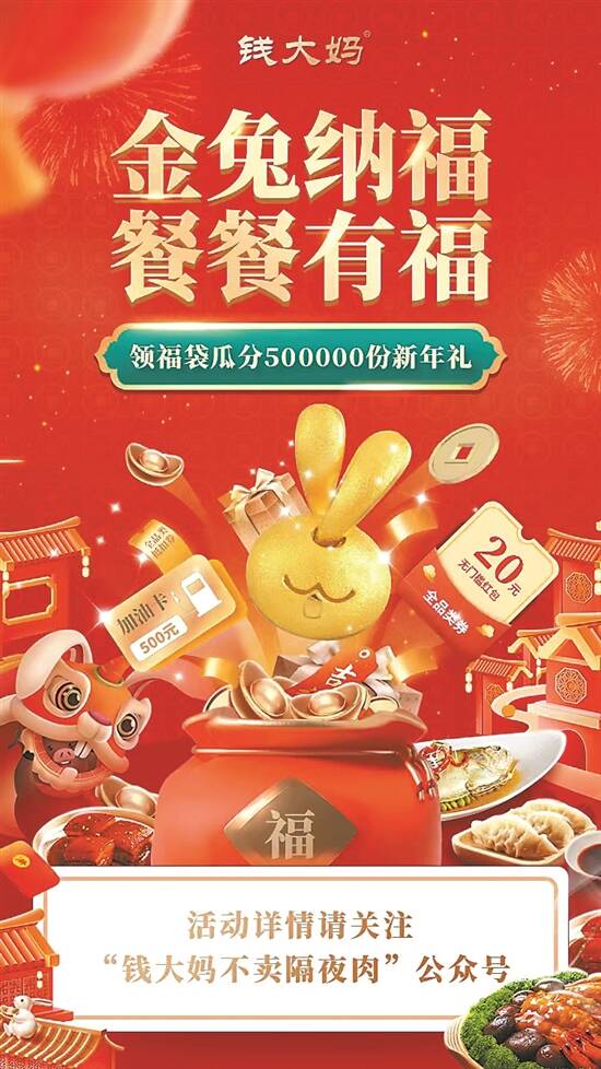 为更进一步让街坊们感受到“烟火气”,钱大妈还开启了诚意满满的“金兔纳福,瓜分50万份红包”活动,通过签到、福袋游戏、邀请好友等设置激发用户与品牌的互动兴趣,以福袋赢金兔,为新年添福助兴,让消费者餐餐都能吃出好意头。同时,借助品牌搭建的私域池,钱大妈还结合朋友圈和社群、视频号直播等各个渠道全方位展示“餐餐有福”年货节,实现精准触达。