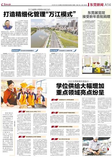 新改扩建公办中小学53所、第二轮集团化办学组建70个教育集团、11所学校被评为“广东省中小学劳动教育特色学校”、实现33个镇街(园区)特教班覆盖、积分入学总学位供给数尤其是学位补贴数大幅增加……2022年,东莞从“学有所教”迈向“学有优教”,着力推动教育高质量发展。站在新一年的起点上,笔者回顾梳理过去一年东莞教育发展取得的成果,盘点那些令广大学生家长感受深刻的亮点。