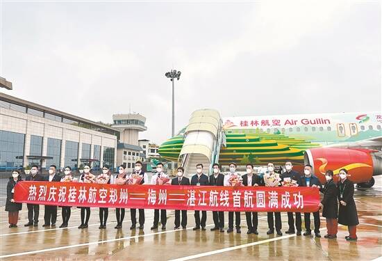 羊城晚报讯 2023年春运刚刚拉开序幕,梅州机场便迎来好消息。1月10日,一架满载郑州旅客的A320客机平稳降落在梅州机场,标志着梅州与桂林航空首次合作的首条航线“郑州⇌梅州⇌湛江”航线正式通航。