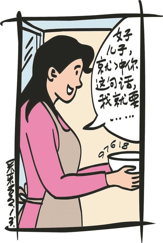 端着汤的妈妈从厨房出来,听到儿子这样说,特别感动,夸道:“好儿子,就冲你这句话,我就要告诉你一个秘密。”(黄超鹏)