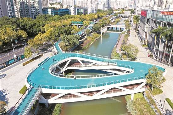 沿河健身器材、竞速跑道、环形跑道、儿童天地、书吧驿站等体育休闲设施随处可见,让市民体会到碧道建设背后的“治水融城”初心。值得一提的是,市民还可以站在栈桥上看到新洲河与平安金融中心“同框”出现,休闲之余还能欣赏城市美景。