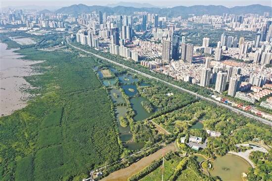 福田区以深港创新资源为驱动,打造成海绵城市建设创新的先导区,一河两岸创新开放,人与自然和谐共生