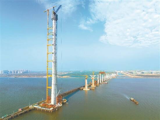 羊城晚报讯 记者郑达,通讯员粤交集宣、岳路建、韩冬冬、逯雪佳摄影报道:1月9日,广东省交通集团发布消息,备受关注的黄茅海跨海通道项目建设迎来新进展。当日上午10时,寒风凛冽的黄茅海海域上传来了一阵欢呼声,随着最后一节塔柱混凝土浇筑完成,5座主塔中,关键工程高栏港大桥东塔首个主塔顺利封顶,项目建设迈入新阶段,迎来“开门红”。