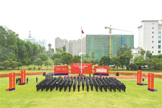 羊城晚报讯 记者郑达、通讯员珠公宣摄影报道:1月10日上午,珠海市公安局在警官文化活动中心运动场隆重举行庆祝2023年中国人民警察节升警旗仪式。珠海市副市长、市公安局党委书记、局长谢仁思出席仪式并讲话。