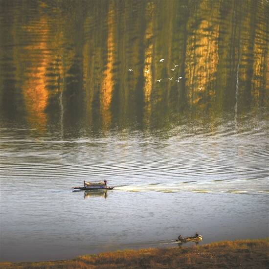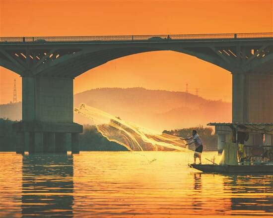 夕阳下,人水交融 陈智华 摄