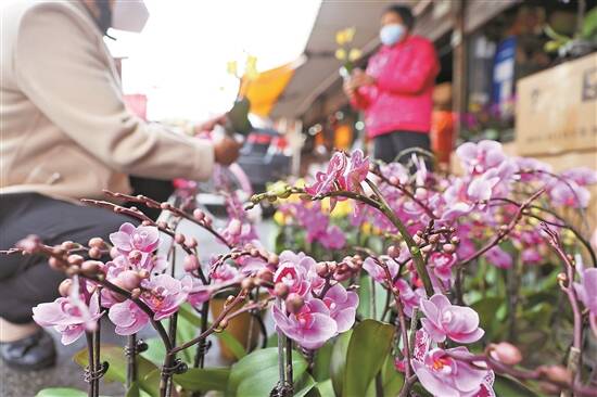 在广东地区,购买年花也是过春节必不可少的项目,眼下东莞各镇街各具特色的年花均已上市。记者在莞城细村市场看到,各式各样的年花、绿色盆栽已摆放好,吸引了不少市民前来选购。虽然连日来天气阴凉,但阻挡不住花市档主的开市热情,他们早早就来到摊位摆设年花。放眼望去,蝴蝶兰、映山红、富贵竹等年花品种丰富、应有尽有。