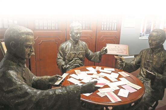 侨批文物馆内的雕塑重现当年批局内拣批的场景 张晓宜 摄