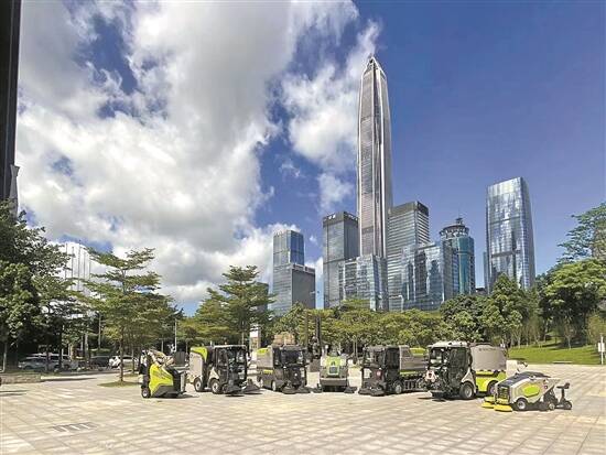 作为深圳市中心的“核心区域”,福田CBD的卫生状况一定程度上是这座城市干净整洁度的一个象征。每天清晨,各种现代化清扫设备已经在高楼林立的街道间来回穿梭。这片CBD区域已经实现全天候无扫把化作业,使用小扫设备,机械化率100%,实现“以吹代扫,以洗代扫”。不仅CBD区域,福田区的皇岗口岸、滨河大道等区域均实行“早晨普扫降本增效方案”,机械化率80%,通过“人机结合”作业模式形成技术创新融为一体的组合化作业模式,抛弃传统扫把作业模式,小型设备全线铺满城中村,提高城中村机械化率,人机配合引领机械化时代,建立高质量、高机械率的深圳特有风景,引领环卫行业转型风向。