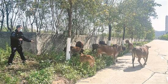 同一时间,富湾值班点民警陈志华马不停蹄赶往发现牛群的村居,通过联系附近居委会咨询当地饲牛的情况,最终确认了牛群的主人。