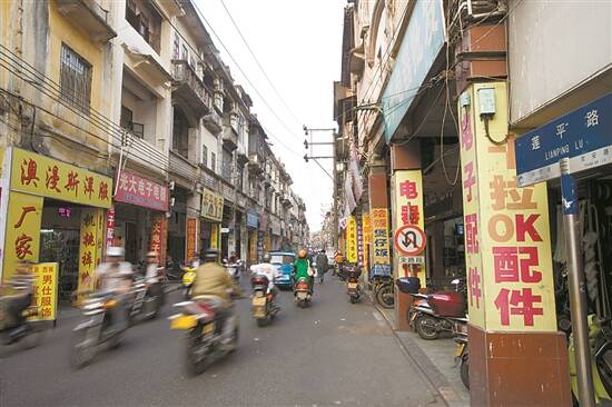 本地历史研究者何耀权介绍,1925年,江门升格成为省辖市,市政建设提速。1929年,江门市政厅筹集了20多万元在这一带大兴土木,将其规划成市中心。最终形成横亘东西的马路,马路东段为兴宁路、西段为莲平路,两路相连形成一条连绵500余米、中西合璧建筑风格的骑楼街。