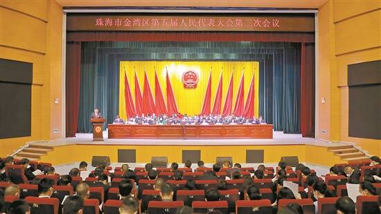 2月16日上午,珠海市金湾区第五届人民代表大会第三次会议在金海岸文化艺术中心开幕。金湾区委书记、珠海经济技术开发区党工委书记梁耀斌出席,金湾区委副书记、区长刘军向大会作政府工作报告。区人大常委会主任吴文莱作区人大常委会工作报告,区人民法院院长郭志俊、区人民检察院检察长李中原分别作两院工作报告。