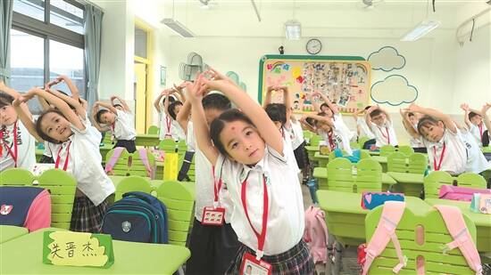 西关培正小学根据小孩子专注力特点,刚开学一周,每上课20分钟左右,就会安排课间操活动,让同学们做手指操,让大脑休息一会儿。省实荔湾二小培训老师的时候也强调:一年级以培养良好习惯、健康的身体和心理为主,因此在课程安排上,学校会为一年级的同学们开设更多体育锻炼、培养劳动习惯与技能方面的课程。