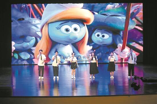 音乐会当晚,《好想大声说爱你》《蓝精灵》等在20世纪80年代至90年代流行的经典动画主题曲轮番上演,由AU人声乐团带来的“阿卡贝拉”表演方式让现场观众大开眼界。“阿卡贝拉”是一种无伴奏的音乐形式,指那些不需要乐器伴奏,仅使用人声演唱的和声音乐作品等。古典形式和流行风潮的结合是现代“阿卡贝拉”的最大特点,更重要的是如今的它已成为当下年轻人“唱在一起”的新生活方式。