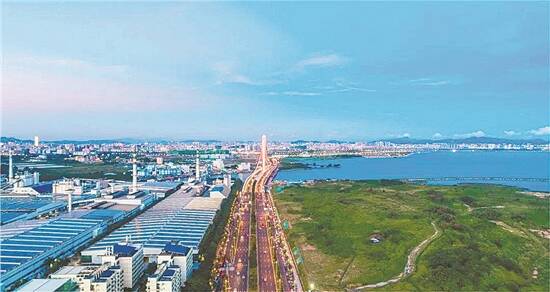 通江达海、内畅外联。五年来,滨海湾高标准推进基础设施建设,一批批“城市脊梁”破土而出。2019年以来,滨海湾新区从交椅湾板块入手,基础设施次第铺开、联通全域。建成总长约19.64公里的“五纵二横”道路,拉开交椅湾“城市骨架”;东湾大道、滨海湾大道向沙角半岛板块延伸,两大板块形成有机整体;海战馆路北延线、虎门大道南延线、内环岛路(西段)“两纵一横”断头路建设不断加快,未来将贯通威远岛全域。从“一纸规划”绘蓝图到城市主次干道四通八达、活力迸发,滨海湾新区日夜兼程、苦干实干,累计建成骨干路网超22公里。去年6月,滨海湾大桥建成通车,将交椅湾到沙角半岛车程缩短至5分钟。高耸入云的桥塔,丝织舞裙的曼妙,波澜壮阔的滨海景观让人移不开眼。滨海湾大桥车流不息、人来人往,俨然成了市民青睐打卡的向海地标。货畅其流,人便其行。高铁、城际、地铁综合立体交通网络越织越密,“轨道上的滨海湾”雏形初显,也将加快大湾区城市要素自由流动,为开创高水平对外开放新局面赋能。