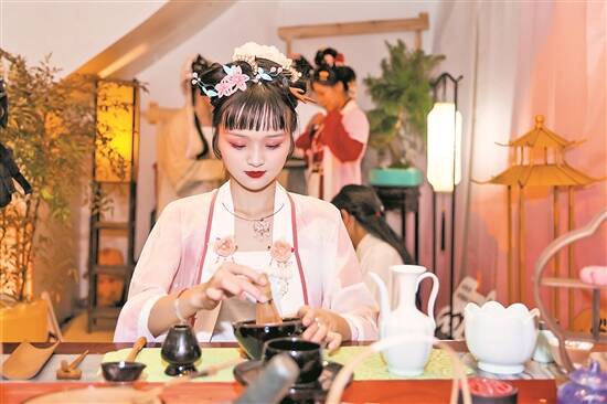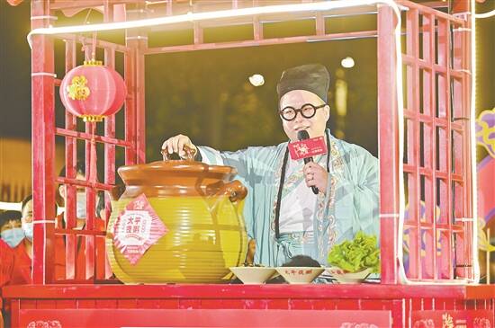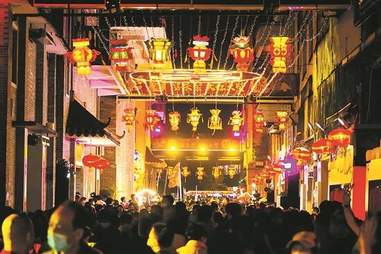 朱紫街“有米坊”前,市民游客纷纷接福许愿,领取“吉米”;太元茶楼下,人们沉醉在宋代点茶和复古粤式点心的美妙中;陈太吉酒庄前,酒香四溢,还有“脑洞大开”的玫瑰玉冰烧雪糕;漫步其中,石湾陶艺、佛山狮头、剪纸、木版年画、刺绣等非遗文创琳琅满目;游玩一圈,夜色渐深,再到太平夜粥来一碗佛山功夫夜粥。和朱紫街相连的跃进路上,“宋潮雅集”文创市集也是人声鼎沸,美陶湾时尚文创、可口美食、新潮饮品以及汉服体验等摊位,受到了大量年轻人的青睐……旧时街景重现,置身其中,仿佛穿越时空。