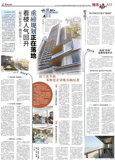 实际上,2021年横沥岛上就已经有多个项目开盘或持续推售,主流价格为3.8万元/平方米,一些楼盘成交不错;2022年国庆档期,该板块的楼盘有过一波齐齐的促销行动,一些楼盘推出2.3万-2.5万元/平方米的特价单位,以期以价换量促进买家成交,彼时广州楼市整体行情还相对低迷。今年2月份,横沥岛上的海语天悦湾等项目还推出了“为爱臻选”团购促销,部分特价单位售价约2.8万元/平方米。从记者了解的情况看,一些主流楼盘现在的价格,尚未恢复到该盘首次开盘时的高位。