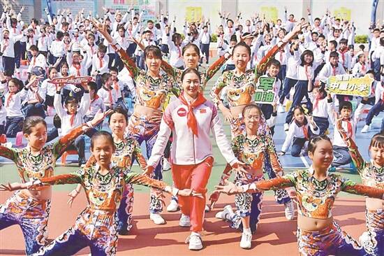 活动最后,杨伊琳与中星小学啦啦操队员们共同完成了一次“青春舞动”。中星小学的啦啦操队在各项活动与比赛中屡获殊荣,这不仅是他们自身努力拼搏的结果,也是学校推动体教融合发展的印证。杨伊琳的到来,让每一位小队员兴奋不已,他们表示,能与奥运冠军一起表演啦啦操,更坚定了成为一名优秀运动员为国争光的梦想。