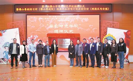 羊城晚报讯 记者杨苑莹、通讯员均安宣报道:日前,佛山粤剧传习所(佛山粤剧院)作品传唱计划在顺德均安启动,中心小学、顺峰小学、富教小学、仓门小学、新华小学、天连小学等6所学校正式挂牌“第一批佛山市粤剧特色学校”。