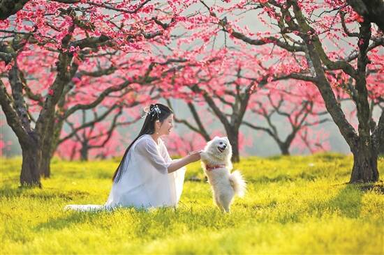 除了粤北山区,距离广州市区不足两小时车程的从化吕田镇,300亩鹰嘴桃花已然新绽,苍劲的老树与远处青山为底色,更衬得桃花缤纷娇艳。位于花都狮岭镇联星村的千亩桃花田,数万株桃花也正迎春而绽,这是广东省内连片规模最大、品类最丰的桃园。四种不同品种的桃树(三月红甜桃、台湾甜桃、南山甜桃与鹰嘴桃)交相辉映,一片红粉为主、白星点缀的烂漫花海正待你观赏。