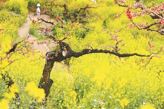 除了粤北山区,距离广州市区不足两小时车程的从化吕田镇,300亩鹰嘴桃花已然新绽,苍劲的老树与远处青山为底色,更衬得桃花缤纷娇艳。位于花都狮岭镇联星村的千亩桃花田,数万株桃花也正迎春而绽,这是广东省内连片规模最大、品类最丰的桃园。四种不同品种的桃树(三月红甜桃、台湾甜桃、南山甜桃与鹰嘴桃)交相辉映,一片红粉为主、白星点缀的烂漫花海正待你观赏。