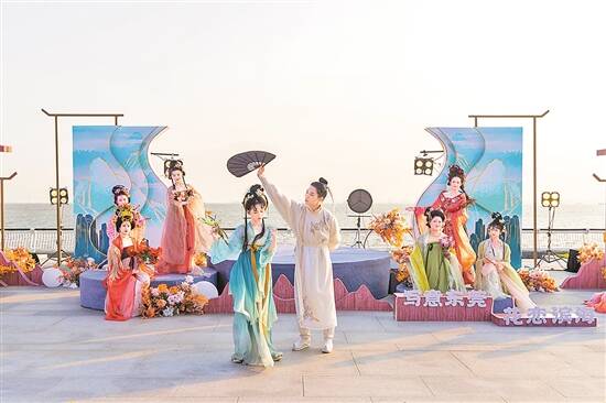 羊城晚报讯 记者王默、通讯员滨海湾宣摄影报道:3月6日下午,写意东莞·花恋滨海——“滨海湾之夜”国风音乐会在滨海驿站拉开帷幕。音乐会结合滨海湾新区的自然之美、生态之美,以活力滨海湾为基调,融汇音乐广播、国乐演奏和汉文化演出等,演绎春色满园梦幻国风歌曲,吸引了众多观众前来观赏。