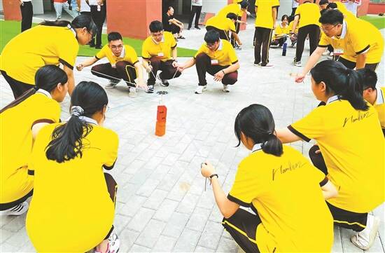 学生在校园内开展心理素质拓展活动