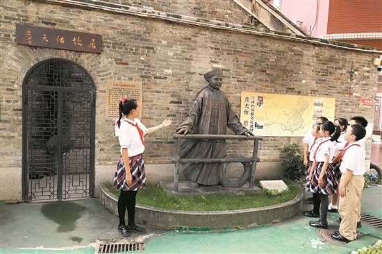 广州市爱国主义教育基地——詹天佑故居坐落于詹天佑小学里。为了让学生能在詹天佑爱国、创新精神的氛围中成长,詹天佑小学会不定期组织学生参观詹天佑故居纪念馆,孩子们观看着一件件展陈资料,感受着詹天佑先生生平所经历的艰难困苦和顽强不屈。学校大队部还组建了一支“詹天佑故居红色宣讲团”,宣讲团成员们穿着礼仪服,戴着麦克风,向前来参观的居民和游客讲解着詹天佑生平的故事,他们对展柜里的物件如数家珍。