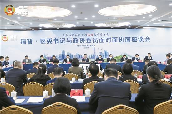 羊城晚报讯 记者郑明达报道:3月14日,2023年福智·区委书记与政协委员面对面协商座谈会在福田会堂召开,深入协商谋良策,广聚共识增合力,共商福田高质量发展良策,努力打造中国式现代化“福田样本”。本次座谈会以“首善治理视角下的福田高质量发展”为主题,紧扣“五个首善”战略目标。