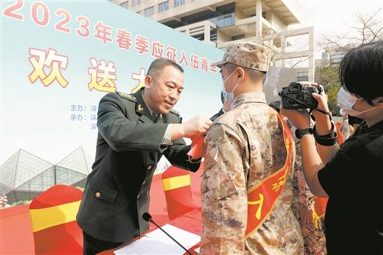 3月14日上午,龙岗区2023年春季新兵入伍欢送大会在区政府内广场举行。来自龙岗区各街道选送的百余名新兵,即日起踏上军旅新征程,履行保家卫国的光荣使命。