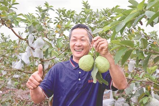 “我从事种植行业已经42年了。”黄卓思说,他最早种植香蕉、甘蔗,十几年前开始芭乐种植,果树是从台湾引进改良的,“现在出货以珍珠白为主,这个品种品质稳定、口感爽脆、味道清甜,很受消费者喜爱。镇政府也有技术人员前来进行指导。”