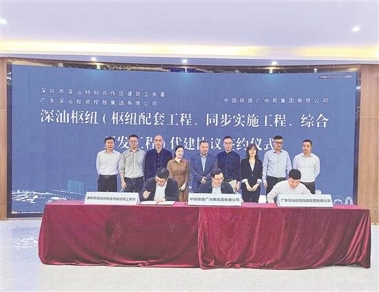 3月24日,深圳市深汕特别合作区建筑工务署、深汕投控集团公司会同中国铁路广州局集团有限公司在广州签订深汕枢纽同步实施工程、枢纽配套工程和综合开发工程代建协议,全面委托广铁集团代建,标志着这座站城高度融合一体化开发项目取得重大进展,进入全面开发建设的“快车道”。