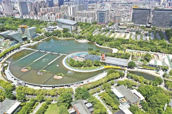 河涌碧波荡漾,河岸花草遍布,在干净整洁的公园碧道上,观景桥、流水亭台楼阁相互交融,游览在自然的生态湿地里,和孩子探索着自然的奥妙,在繁华的城市中心有着一片栖息地,这是每一位市民都渴望的景象。