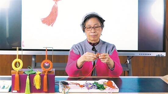 双钱结、纽扣结、凤尾结、琵琶结这些都是我们常见的中国结样式,编织中国结讲究“七分整理三分做”,做到心思细、手灵活,方能编出一个活灵活现的中国结。广州市轻工职业学校老师林璟琪和天河乞巧习俗项目代表性传承人潘慧君为学子们带来乞巧文化课堂,了解乞巧文化的由来,学习如何编织中国结。