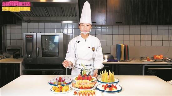 除了圣女果的花式切法外,广州市旅游商务职业学校的刘月娣老师还为我们带来了橙子、火龙果、苹果、西瓜、哈密瓜的花式切法。