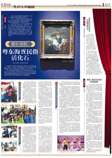 她们身后站着女儿,还有孙女,年轻的一代用新的方式接力传承古老的渔歌。她们无比虔诚、无比深情的歌声在祠堂回荡:“南海水面(哦)映(啊哟)霞光,海风阵阵(哩)掀起浪。站在船头(哦)深(啊哟)拉网,渔家世代(哩)向海洋……”